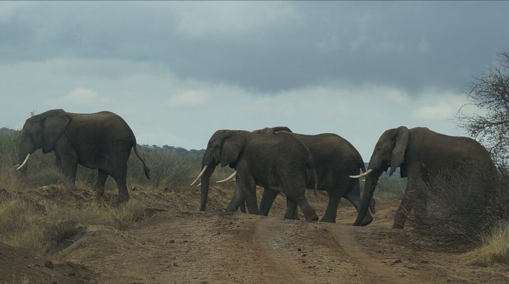 The elephants come by our compound every night and know not to come near our fence. I think it might have been the government that drilled a borehole for them, not far from our compound. I wanted to stay at Ol’Gulului for a couple of nights, but the road was flooded, and we couldn’t get there. I thought we should just park our car at the elephant’s well, and sleep in it, so I could see them, but I got vetoed. The elephants are big and wild, and it’s not safe to be around them. There is a report that they had destroyed a safari van in the region